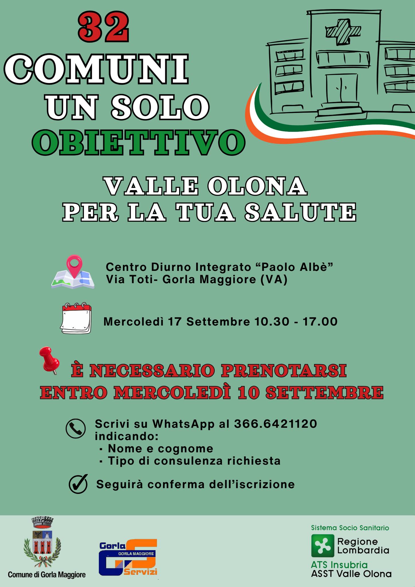 Per partecipare alle iniziative è necessario effettuare la prenotazione entro il 10 settembre, inviando un messaggio WhatsApp al numero 366 6421120 e indicando nome, cognome e tipo di consulenza richiesta.