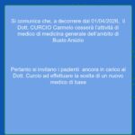 Cessazione attività Medici di Medicina Generale e Pediatri di Libera Scelta – Avvisi