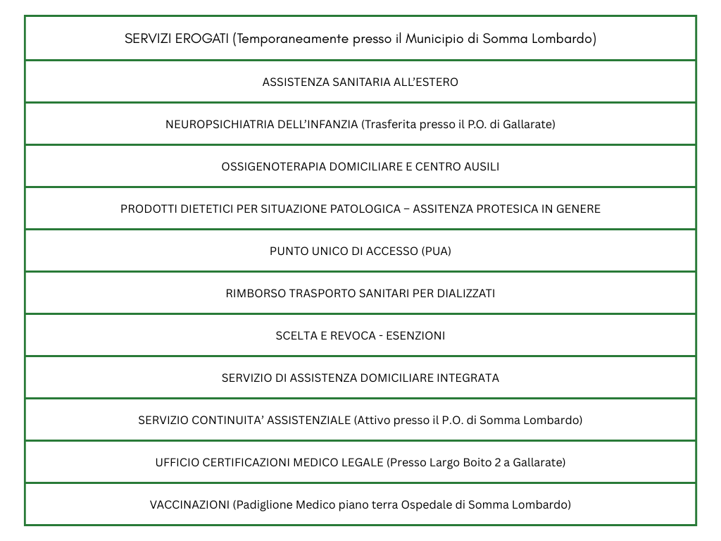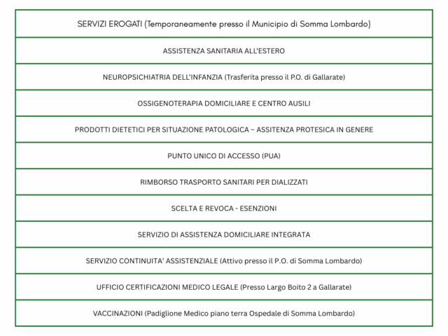 Documento su come orientarsi tra i servizi erogati nella Casa di Comunità di Somma Lombardo (come da immagini pubblicate) disponibile a questo link: https://www.asst-valleolona.it/wp-content/uploads/2026/03/Come-orientarsi-CDC-Somma-L.pdf