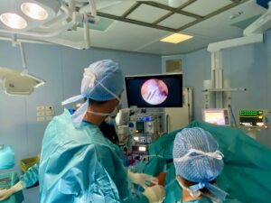 A seconda dellāintervento da svolgere, può essere utilizzando un lettino operatorio Ortopedico o Traumatologico. La chirurgia artroscopica viene eseguita utilizzando una colonna artroscopica con fibre ottiche altamente performanti e monitor ad alta definizione 4K .