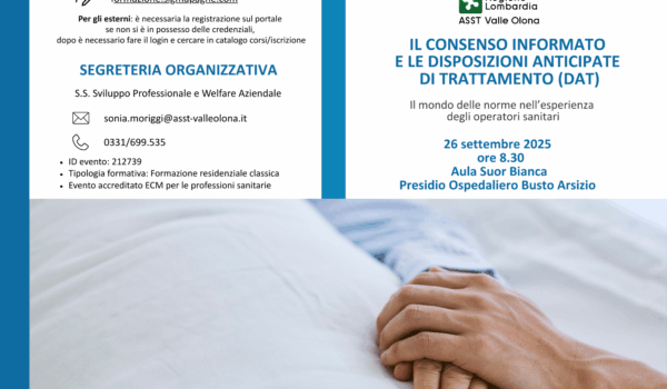 Evento formativo il 26 settembre ore 8.30 Aula Suor Bianca