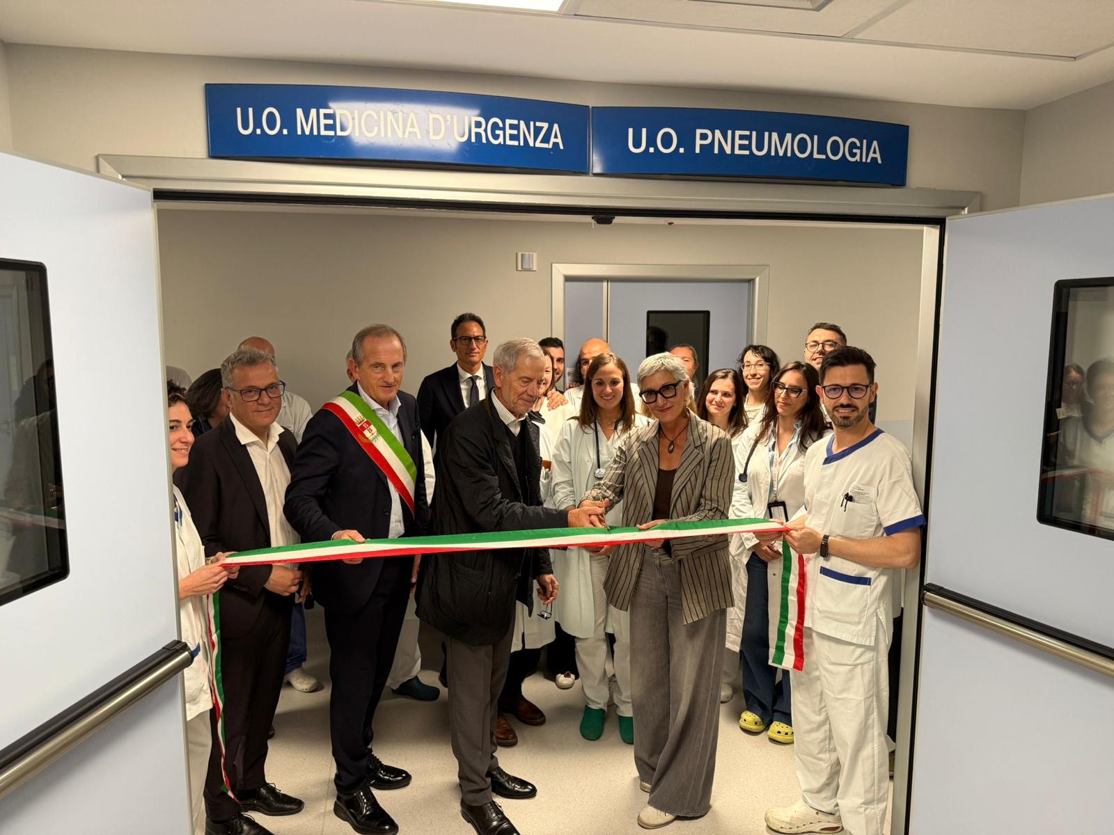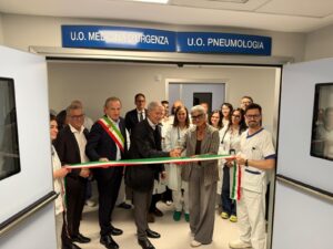 Prima tappa, il secondo piano del Padiglione Polichirurgico che, a seguito di lavori di ristrutturazione, ospita ora i reparti di Pneumologia (16 letti), di Medicina d’Urgenza (10 posti di degenza) e l’area Semi Intensiva Respiratoria, composta da 6 posti letto più uno dedicato all’isolamento.